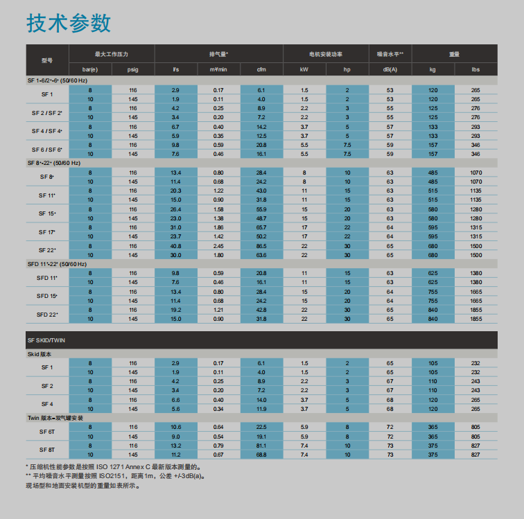 SF 和 SF+ 渦旋式無油空氣壓縮機